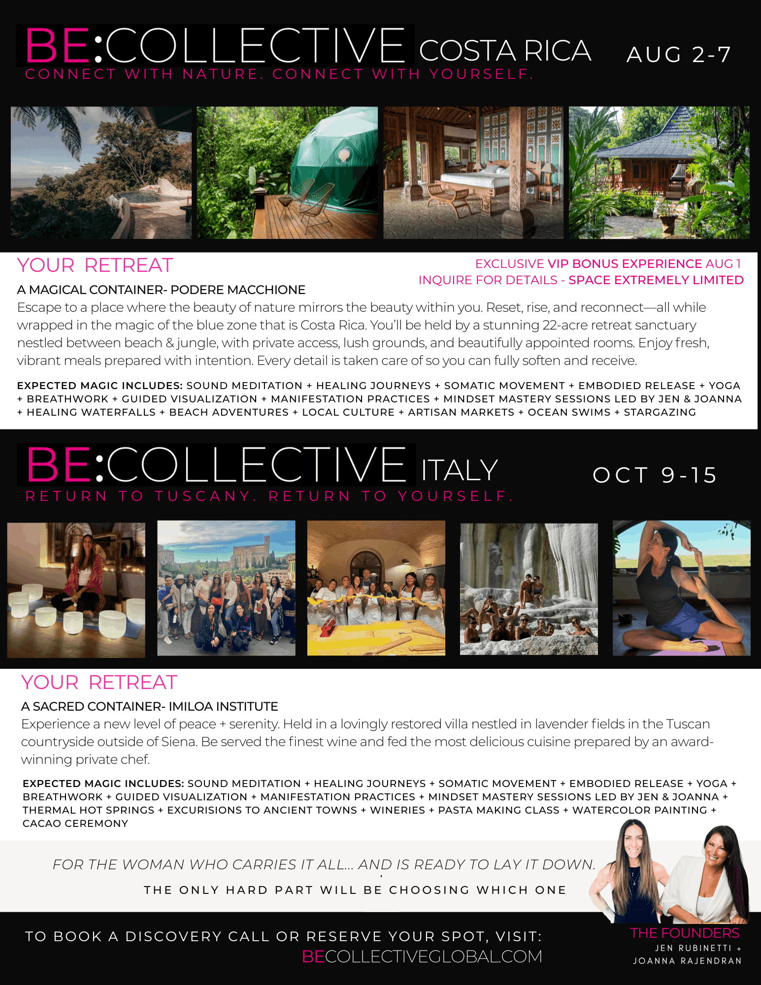 The BETREAT is a 6-night get-away brought to by retreat organizers, podcasters & spiritual seekers, myself and Jen Rubinetti (Founder of The Mystical Connection).